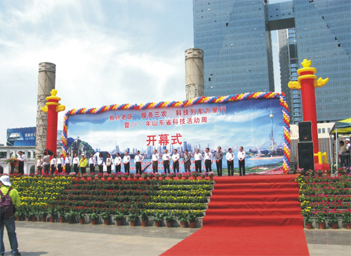 5月14日,“振興老區 服務三農 科技列車沂蒙行”活動在臨沂市舉行。山東省委常委、副省長孫偉、省政協副主席李德強出席開幕式。科技部黨組成員、紀檢組組長郭向遠出席開幕式,科技部等部委有關領導、科技列車專家服務團全體成員,臨沂市副市長左沛廷等有關領導以及社會各界代表也參加了開幕式。