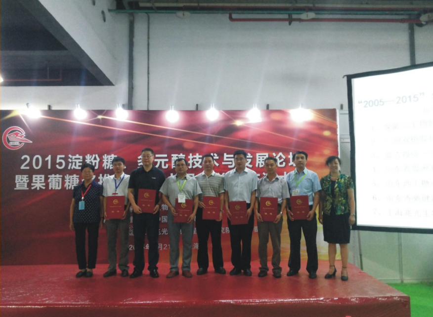 展會同期召開了“中國生物發酵產業協會一屆七次理事會”、“中國生物發酵產業協會二屆會員大會暨二屆一次理事(擴大)會”、“2015淀粉糖、多元醇技術與發展論壇暨果葡糖漿推廣應用十周年總結交流大會”、“2015國際氨基酸產業高峰論壇”、“第三屆發酵行業節能環保論壇”等會議,并隆重表彰了“2005-2015”果葡糖漿行業突出貢獻企業。集團作為協會副理事長單位參加會議并上臺領取2005-2015果葡糖漿行業突出貢獻獎勵。此次與會,既展示了企業形象,又加強了行業間的溝通交流,了解了行業進展,具有積極的意義。
